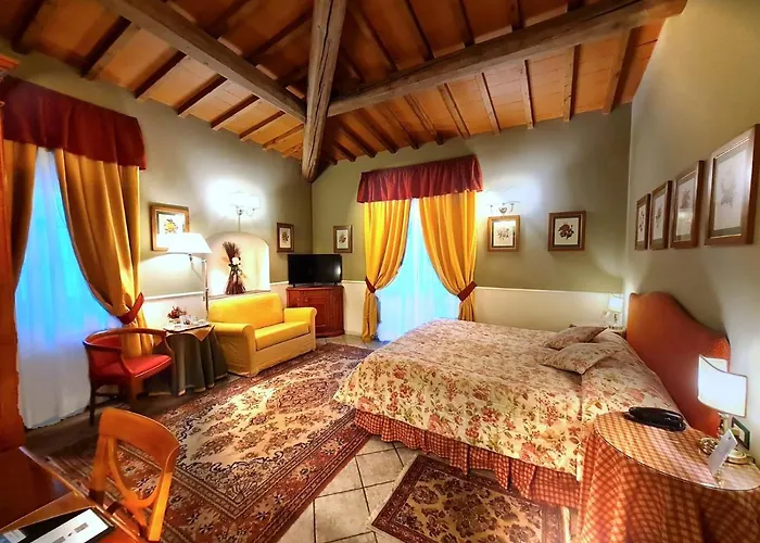 Os quartos do hotel incluem mobiliário elegante.